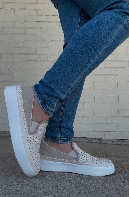 Outwoods Shauna Slip On Shoe-Cream Crochet Fabric